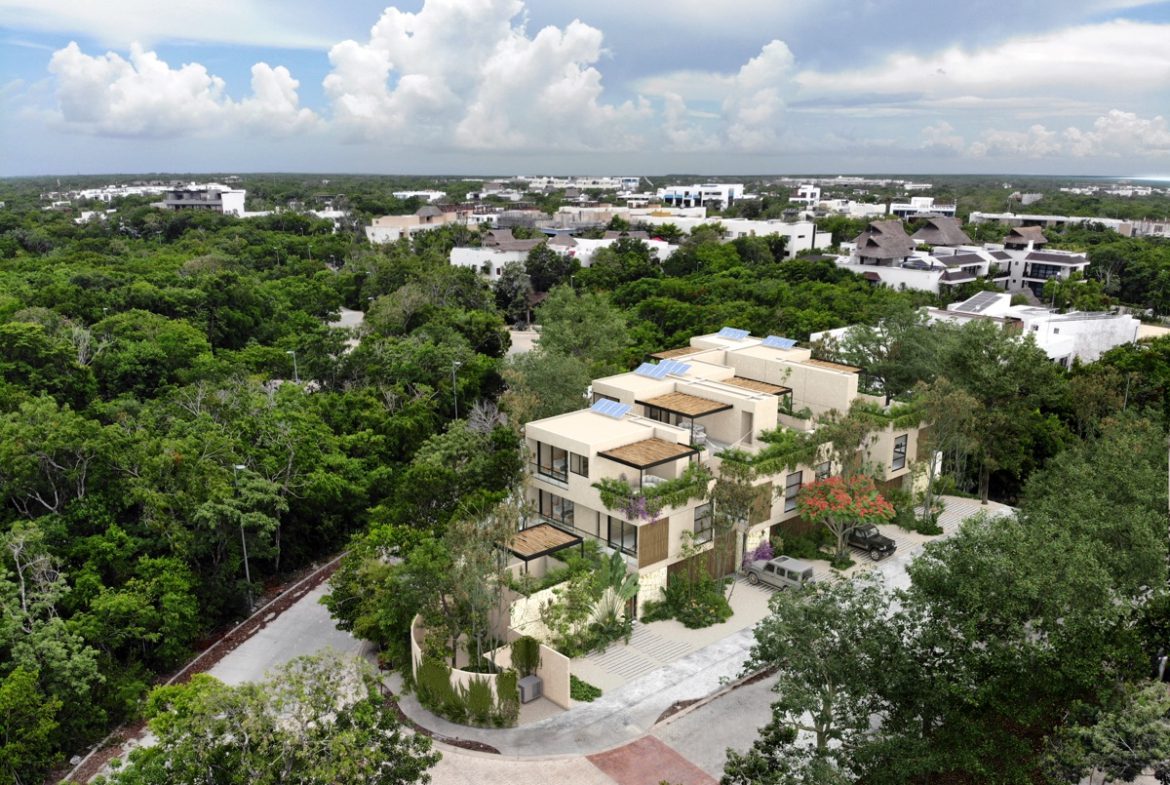The Enclave is a new project with just five luxury homes in Pure Tulum within the exclusive master-planned Aldea Zama residential area of Tulum. The complex is surrounded by tropical jungle and located just minutes from the sparkling white sand beaches, the famous Mayan ruins and the bohemian chic town center of Tulum. Situated about halfway between the beach and the highway, Aldea Zama is ideally located to take advantage of all that this fast-growing tourist destination has to offer.
